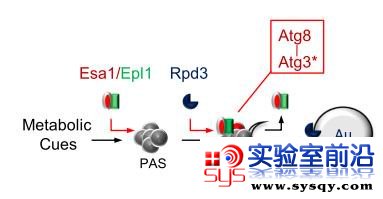 图为乙酰化酶Esa1和去乙酰化酶Rpd3调控自噬发生的模型。