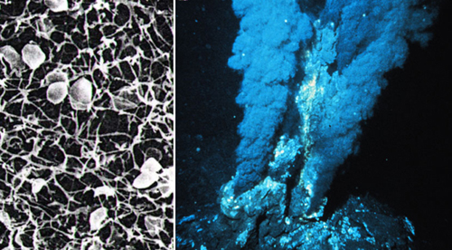 图片展示的是1979年在深海火山口富含营养物质的边缘发现的细菌——Pyrodictium abyssi,它们是最初的extremophile。除了承受足以将潜艇压成薄煎饼的大气压外,Pyrodictium abyssi还经受住超过水沸点的高温考验,惊人的生存能力由此可见一斑。Pyrodictium abyssi外观扁平,好似一个不规则的盘子,它们在中空管状结构“套管”—— 结构上具有极强的抗热能力——中积聚。