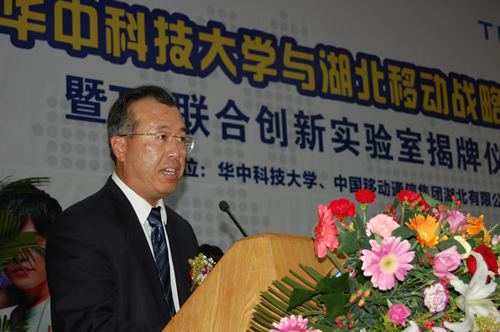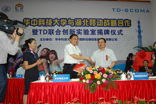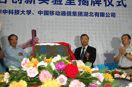 中国移动湖北公司总经理郭永宏、华中科技大学常务副校长林萍华为“TD创新联合实验室”揭牌。