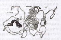 从美国国家生物技术信息中心的蛋白质结构数据库获取TFPI的K3结构域和LRP的C3亚结构域的空间结构解析数据,以此为基础,在SGI 02计算机工作站上,应用InsightⅡ软件包进行K3+C末端的同源模建,并将其与LRP的C3亚结构域进行分子对接,搜***3+C末端分子中距离分子间相互作用面最近的极性氨基酸残基。结果发现TFPI的K241、K254、K260和K261氨基酸残基在与LRP的分子间相互作用中发挥重要作用,其中K254距离LRP分子最近。