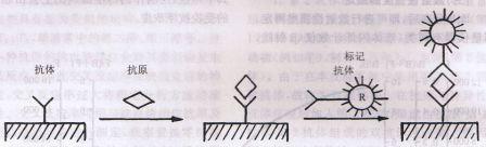 受检抗原与固相抗体结合后,洗涤,加核素标记的抗体,反应后洗涤除去游离的标记抗体,测量固相上的放射性的量。不论是单位点还是双位点IRMA,最后测得的放射性与受检抗原的量成正比。