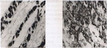 (18)镜检:阳性物质呈黑色或黑褐色,颗粒分布于抗原—抗体反应部位;背景较干净,呈红色。
