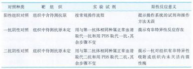 由于影响免疫组织化学染色结果的因素甚多,染色中必须有对照实验,否则不可能正确评价染色结果。对照实验包括阴性对照、阳性对照和自身对照。在实践中可用染色组织切片中不含抗原的组织作为阴性对照.而用含抗原的正常组织作阳性对照,这种自身对照具有节约的意义。观察染色结果时,先观察对照组织的结果,如阳性对照组织中阳性细胞呈强阳性,阴性对照细胞呈阴性,内源酶阴性,背景无非特异性染色时,表明本次实验的全部试剂和全过程技术操作准确无误,待检组织中的阳性细胞具有可信性。免疫组织化学染色中对照片的设置非常重要.它是判断染色是否成功的关键依据,而且也是检测每一个抗体的质量标准。常设的对照实验如下。