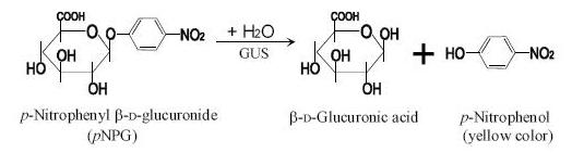 p-Nitrophenol10×GUS assay buffer (0.5 M Na phosphate, pH 7.0; 1% Triton X-100; 0.1 Mβ-mercaptoethanol)GUS 终止液 (2.5 M 2-amino 2-methyl propanediol, 溶于水中, pH 11)